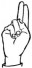На ћирилици написано МОМИРА ТРАПИЋ састоји се из 12 слова [?]. Исписано ћириличном једноручном азбуком за глувонеме: